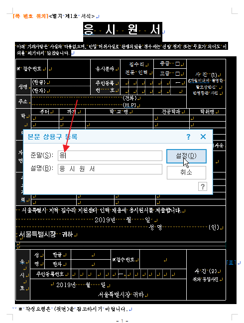 * 붙여넣을 땐 입력한 준말과 Alt+I