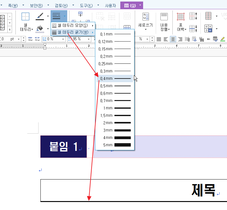 공문서 만들기② _ 제목 띠, 표, 표지, 그리기 등